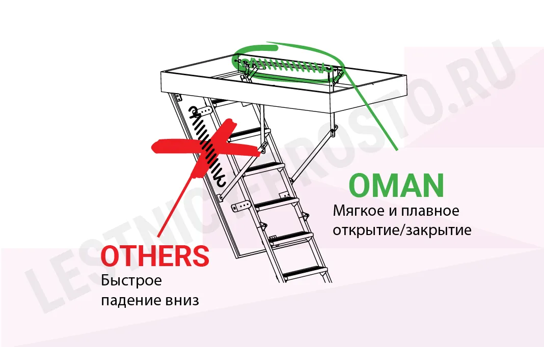 Чердачная лестница OMAN MAXI EI45 +1 доп.секция, 60×120 см, h-335 см