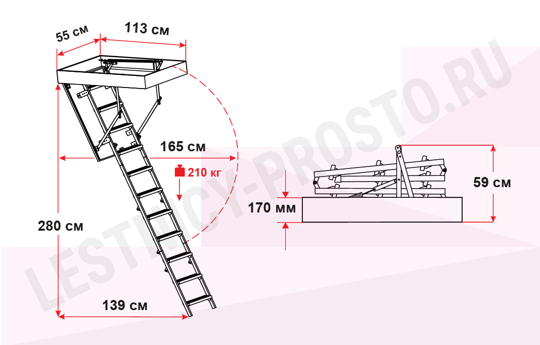 Чердачная лестница OMAN Metal T3 SUPER 55×113 см, h-280 см