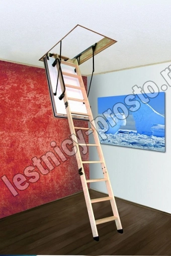 Максимально утеплённая чердачная лестница из массива сосны. Складная, трёхсекционная. Лестница идеально подходит для организации прохода на холодный чердак.