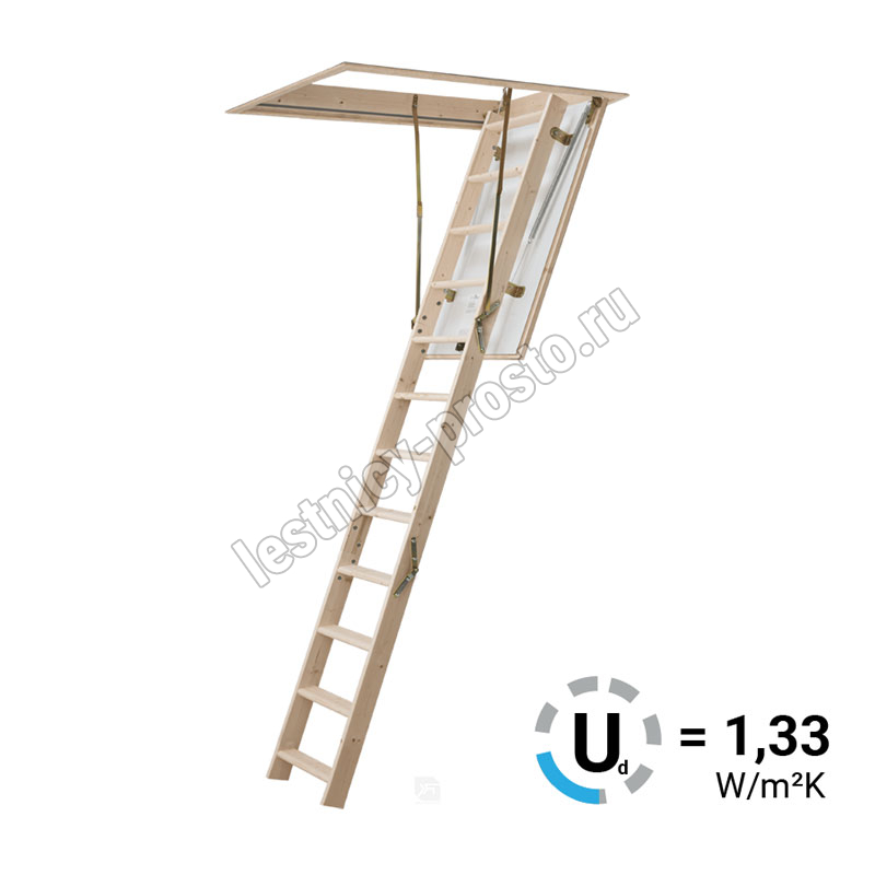 HOBBY 26 - трехсекционная утепленная лестница из скандинавской медленнорастущей ели, отличающейся повышенной прочностью.