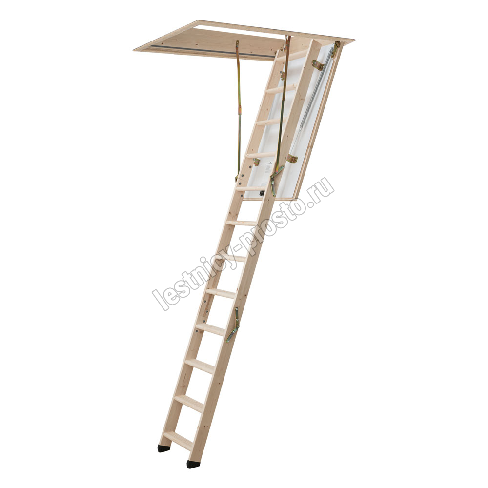 PROF 36 - трехсекционная утепленная лестница из скандинавской медленнорастущей ели, отличающейся повышенной прочностью, ступени из сосны, имеют антискользящие насечки.