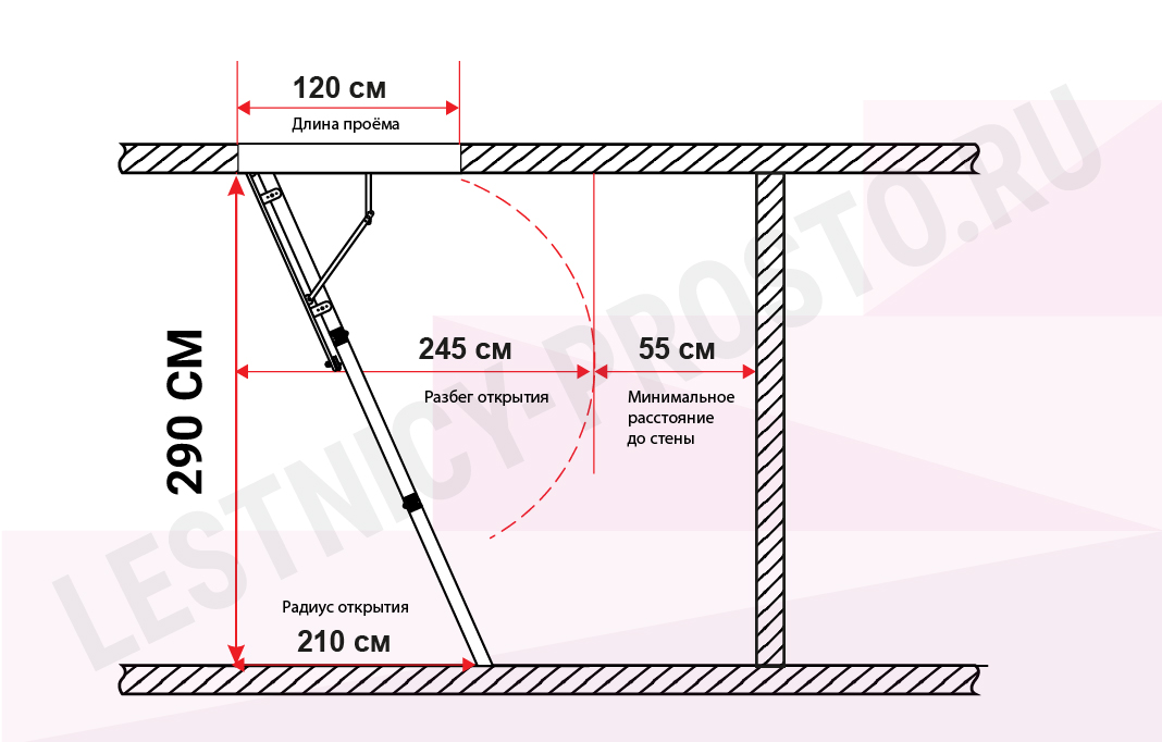 С помощью дополнительных секций (покупаются отдельно) базовую высоту лестницы можно увеличить до 3150 мм. или до 3400 мм.