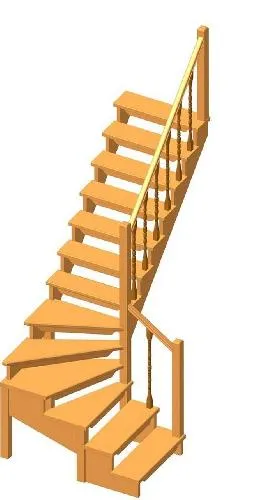 Удобная поворотная лестница на второй этаж. Дополнительные ограждения по первому маршу обеспечивают безопасность при подъеме и спуске, кроме того, небольшой угол подъема открывает всю площадь ступеней. Монтаж осуществляется силами двух человек на объекте по указаниям, приведенным в паспорте на лестницу.