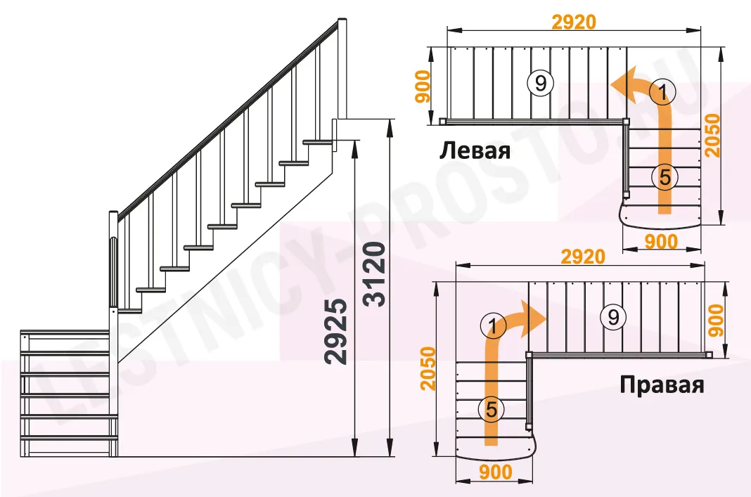 Высота лестницы 2925 - 3120