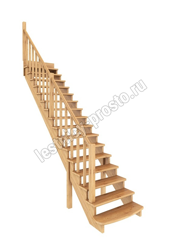 | Лестница К-020у из сосны с подступёнками |