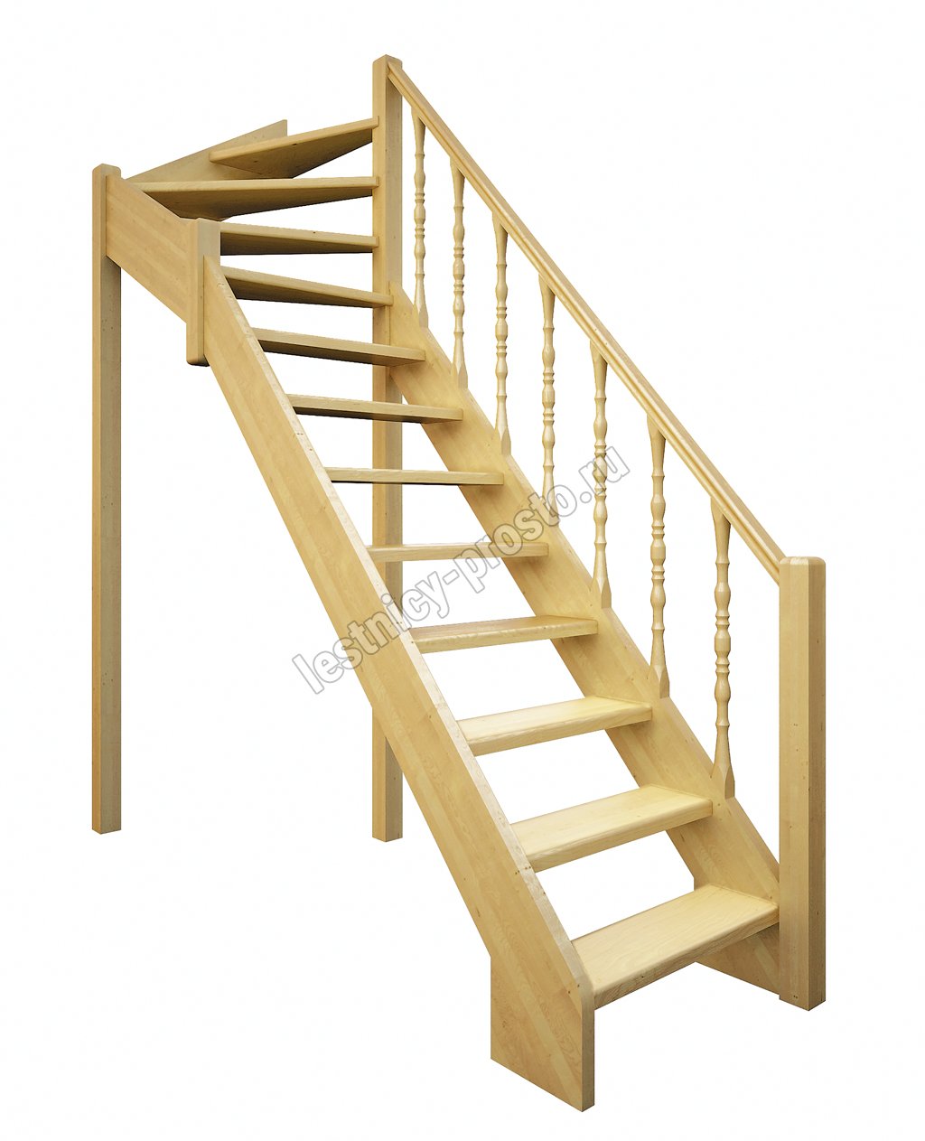 Увеличение высоты подъёма достигается добавлением подставки; уменьшение высоты достигается изъятием необходимого количества ступеней, начиная с верхней; точная подгонка по высоте за счет размера верхнего шага. Базовый комплект включает в себя деревянные элементы лестницы и ограждения без какого-либо покрытия.