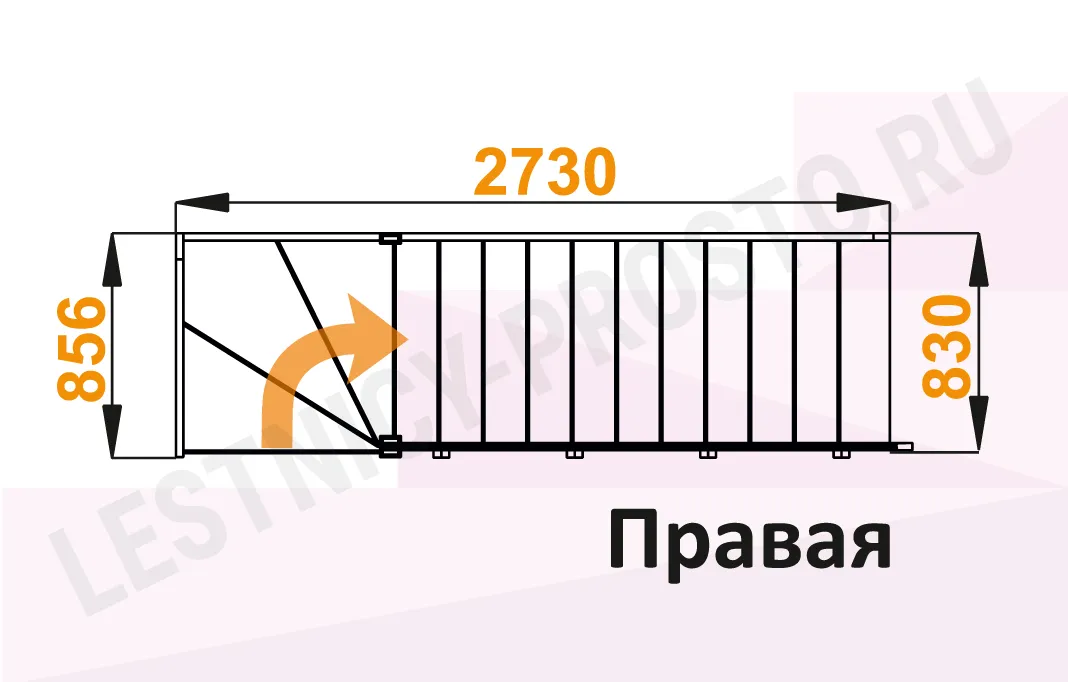 Схема лестницы ЛС-14М с поворотом направо
