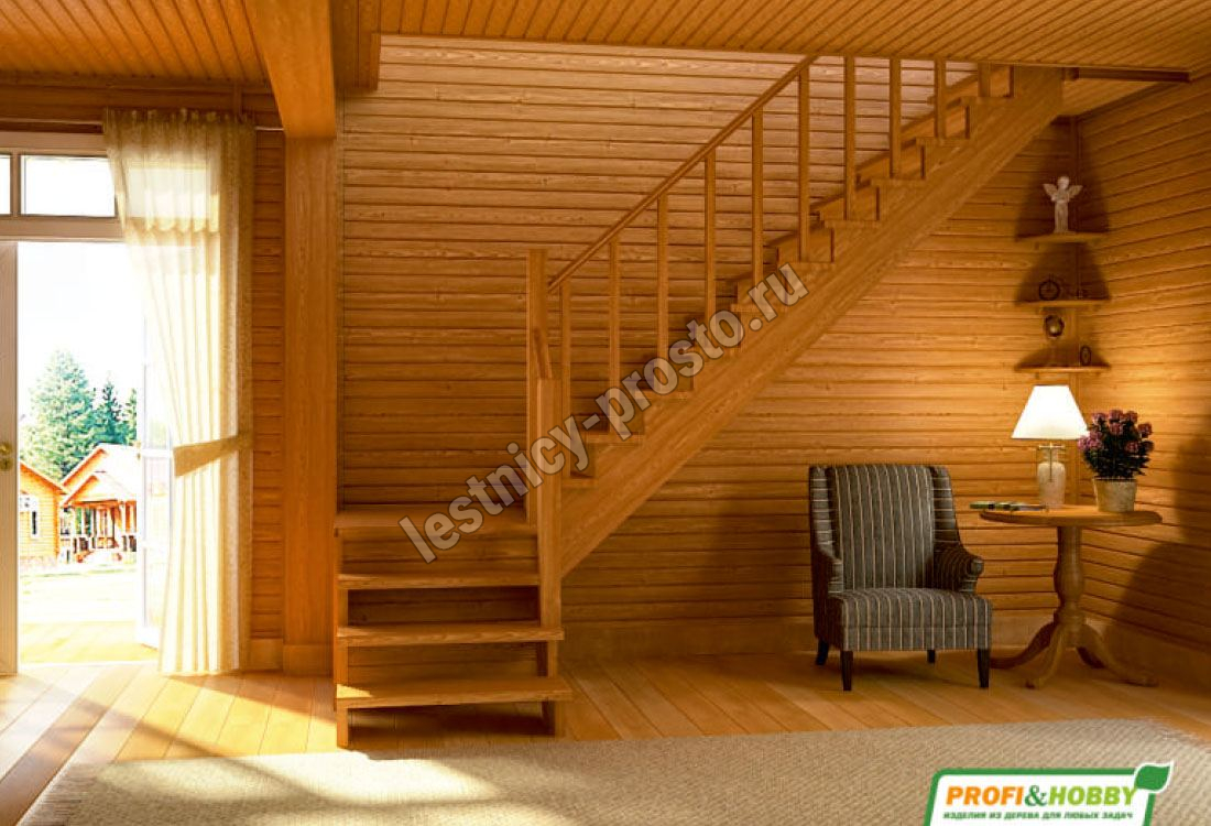 Ступени и поручень лестницы изготовлены из бука, остальные элементы из сосны.