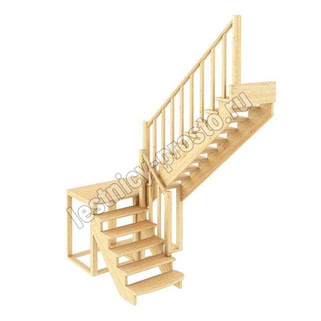 Материал: Дуб (ступени и поручень), сосна (косоуры, столбы, балясины)