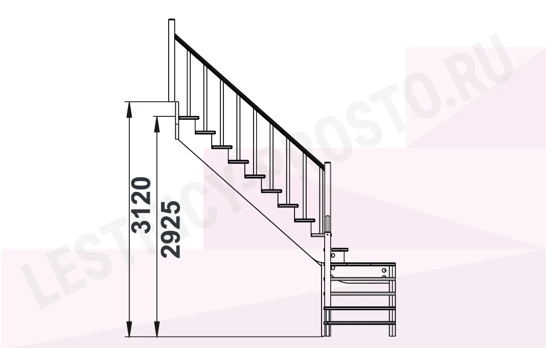 Высота лестницы 2925 - 3120 мм