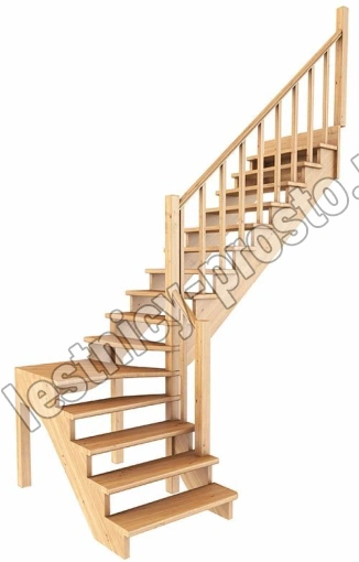 Ступени и поручень лестницы выполнены из дуба, остальные элементы из сосны. Возможно изготовление данной модели полностью из дуба. Базовый комплект включает в себя деревянные элементы лестницы и ограждения без какого-либо покрытия.