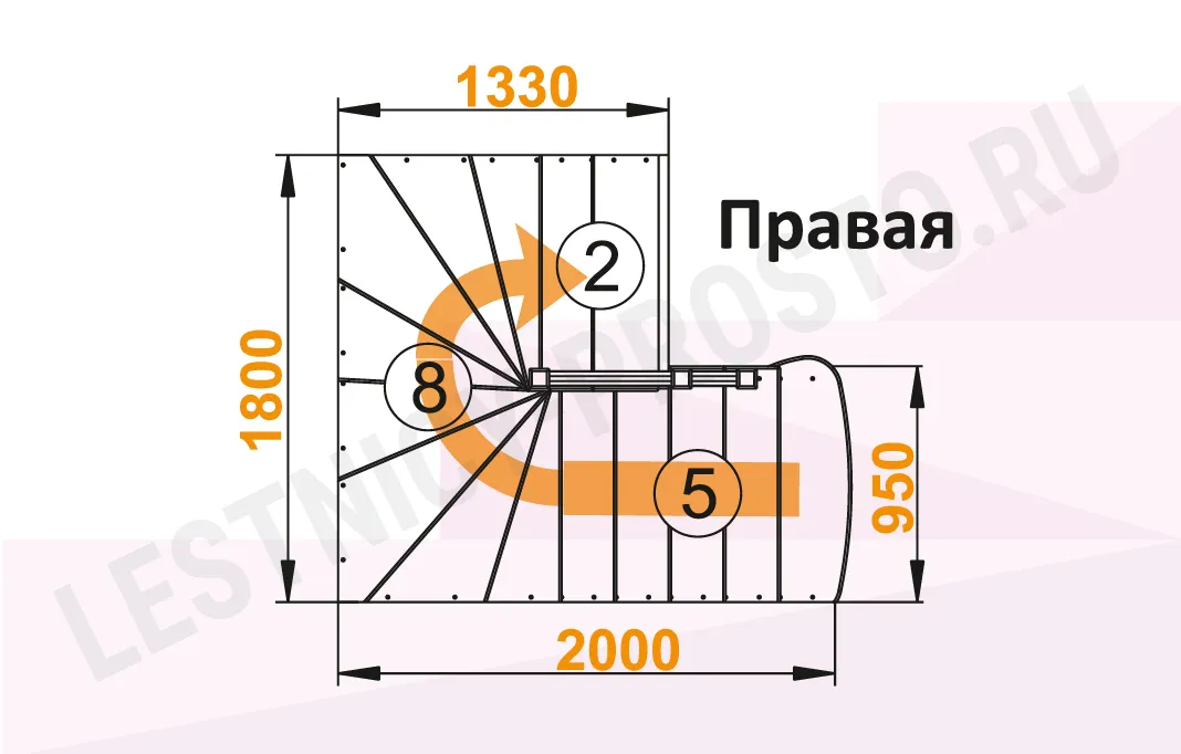 Схема лестницы К-003М/3 с поворотом направо