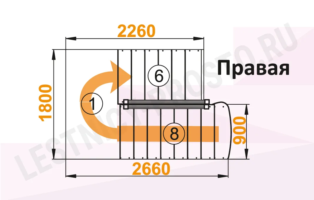 Схема лестницы К-004М/2 с поворотом направо