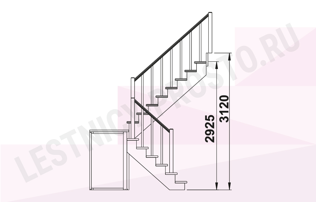Схема лестницы К-004М/3 с поворотом налево