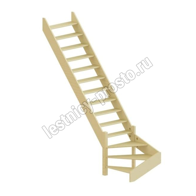 Базовый комплект включает в себя деревянные элементы лестницы без какого-либо покрытия.