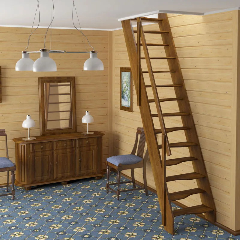 В производстве лестницы ЛС-215м под покраску используется сосна с небольшими изменениями цвета, что практически не влияет на ее механические свойства и почти незаметно при покраске в темные цвета. Базовый комплект включает в себя деревянные элементы лестницы с подступенками и ограждения без какого-либо покрытия.