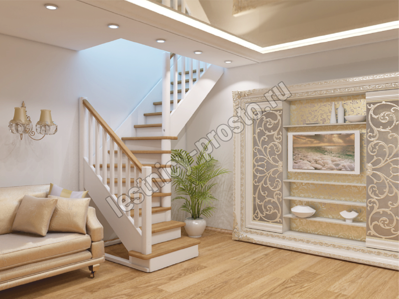 В производстве лестницы ЛС-225м под покраску используется сосна с небольшими изменениями цвета, что практически не влияет на ее механические свойства и почти незаметно при покраске в темные цвета. Базовый комплект включает в себя деревянные элементы лестницы и ограждения без какого-либо покрытия.