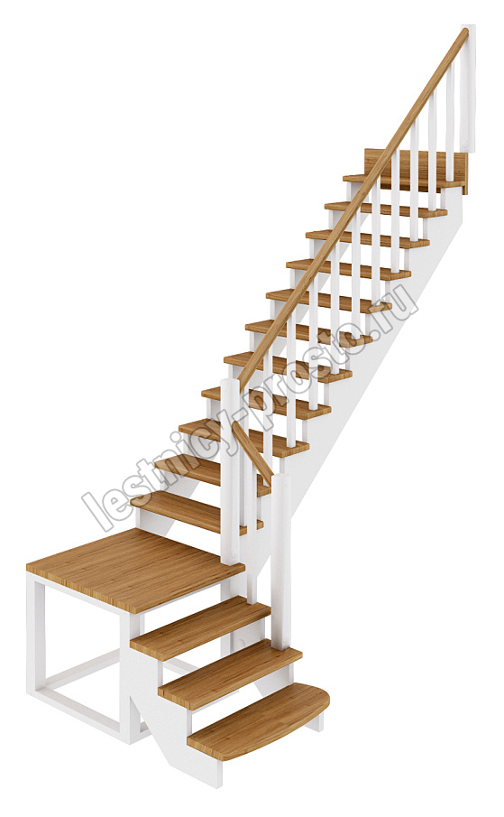 Материал: Ясень (ступени и поручень), сосна (косоуры, столбы, балясины)