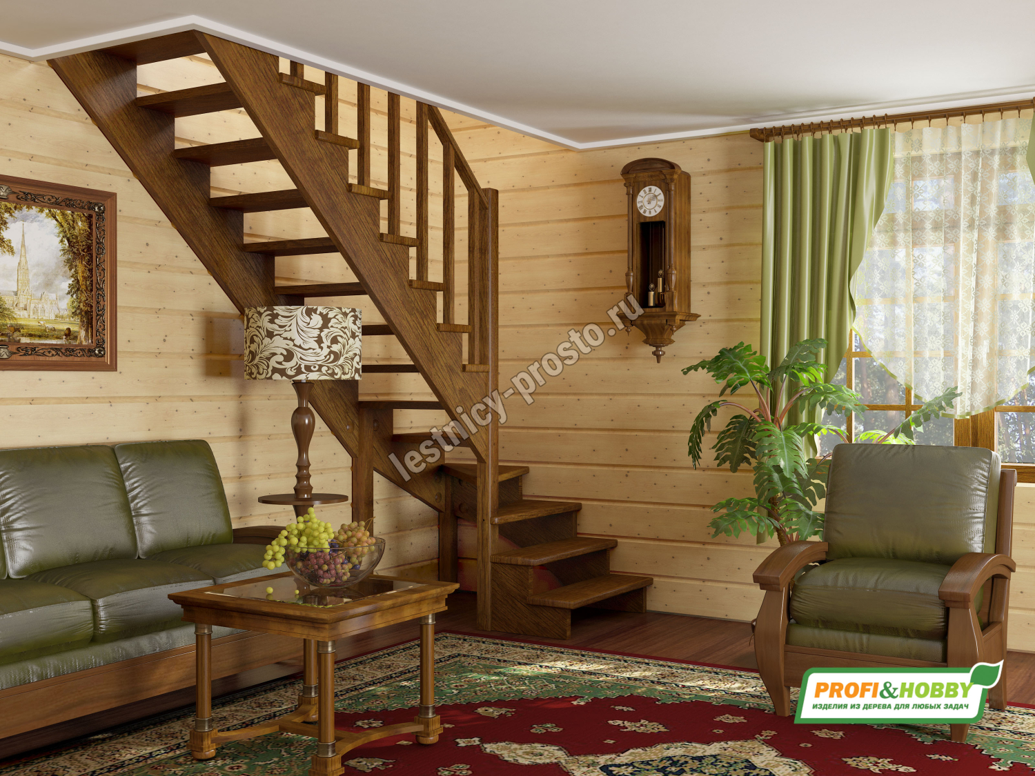 Базовый комплект включает в себя деревянные элементы лестницы и ограждения без какого-либо покрытия. Вы можете заказать у нас покраску лестницы в цвета, отвечающие особенностям вашего помещения.