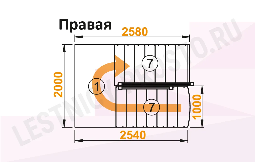 Лестница К-104М с поворотом направо