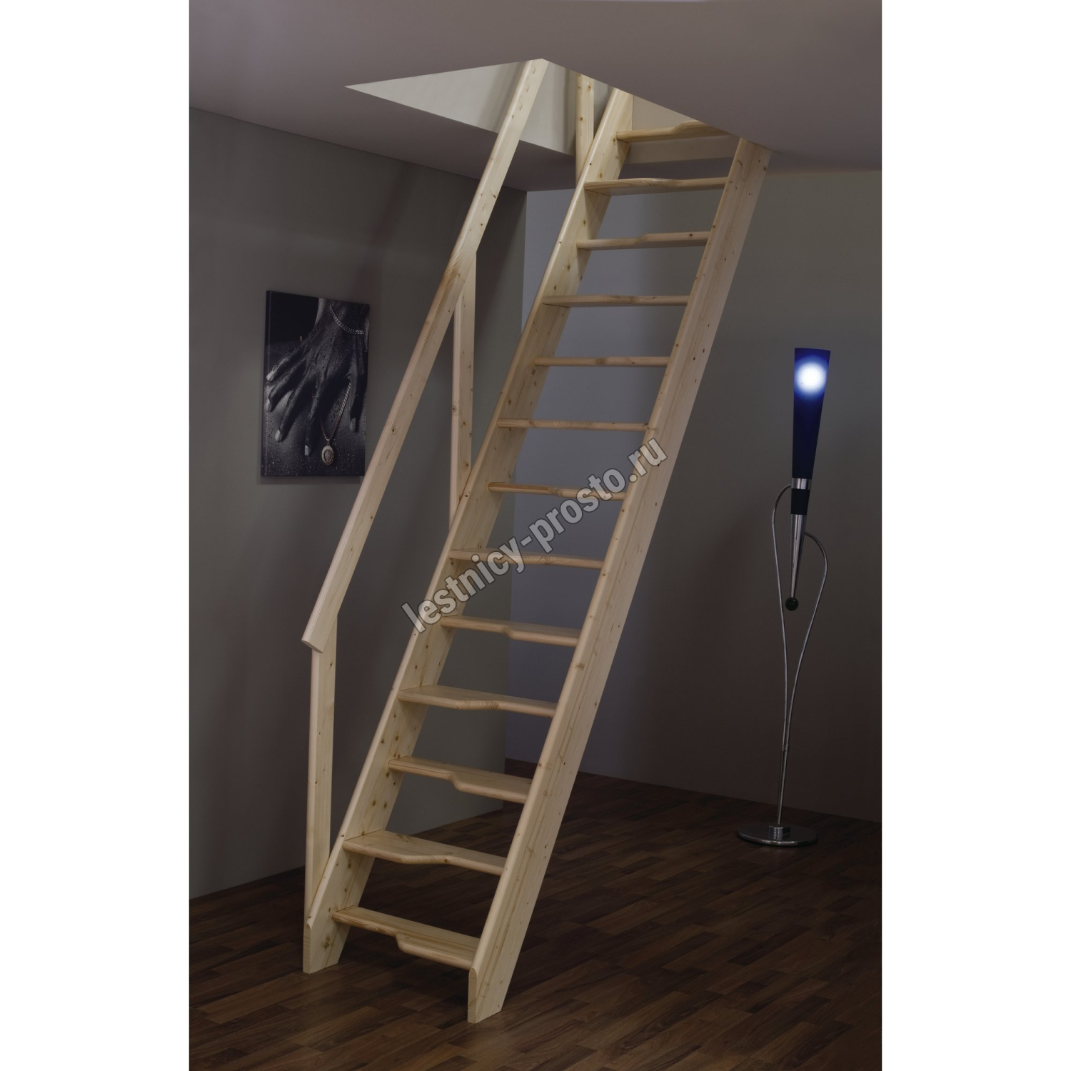 Базовый комплект включает в себя деревянные элементы лестницы и ограждения без какого-либо покрытия.