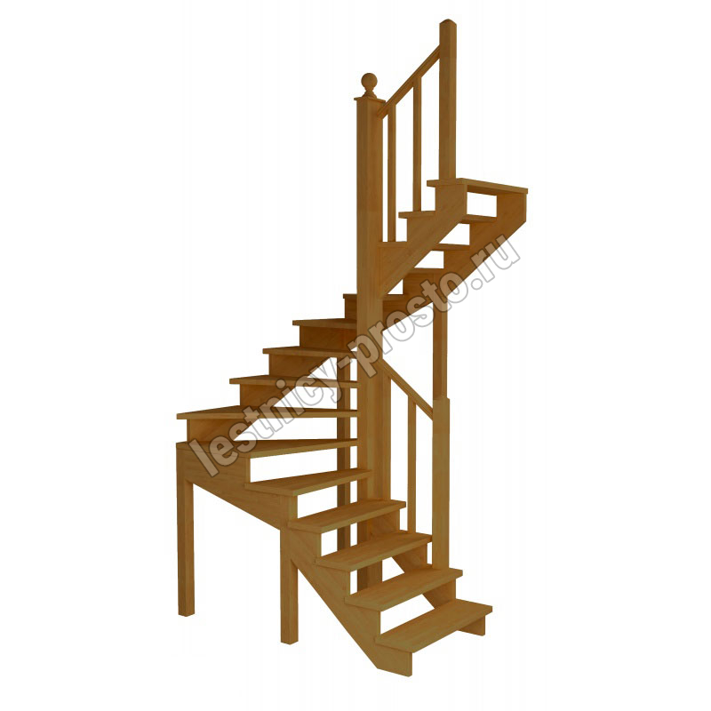 Лестница изготавливается под заказ. Возможны варианты подходящие под необходимые размеры проёма. Базовое ограждение можно заменить на кованое или точеное. Лестницу можно дополнить подступенями, бортиками, миниподступенями. Первую ступень можно заменить на пригласительную - лекальную. Классическая модель поворотной лестницы раскрывает всю природную красоту натуральных материалов. У лестницы комфортная высота шага, удобный широкий марш и угол подъема. Указана стоимость лестницы без какого-либо покрытия.
