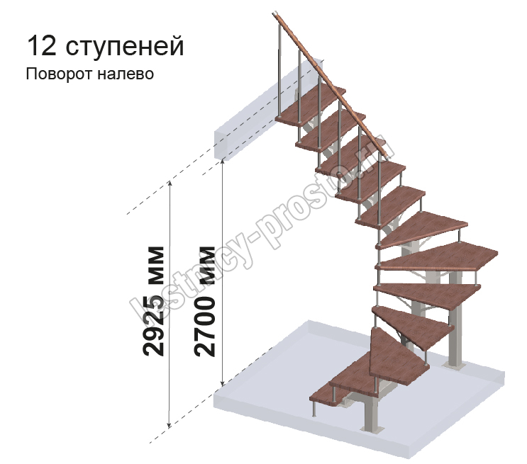 Комплект ограждений для П-образной лестницы MONO h292.5 из 12 ступеней.
