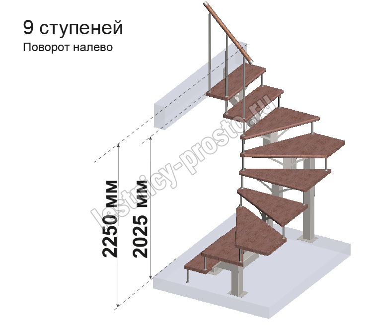 Комплект ограждений для П-образной лестницы PROSTO MONO из 9 ступеней.