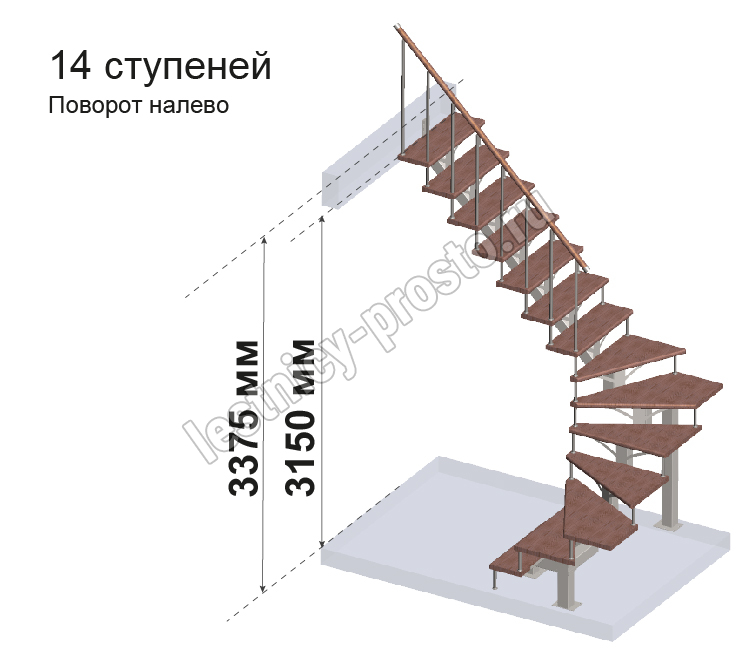 Комплект ограждений для П-образной лестницы PROSTO MONO из 14 ступеней.