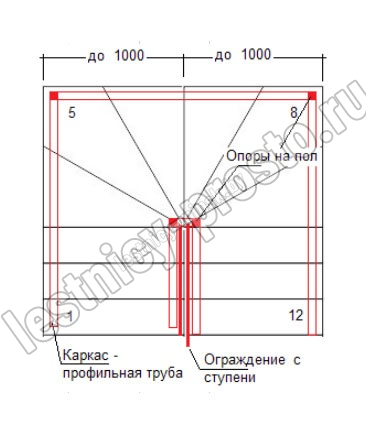 стойки из нержавеющей стали (устанавливаются через 1 ступень) диаметром 38 мм,