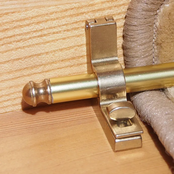 Ковродержатель комплектуется двумя держателями и двумя заглушками из латуни, а также трубкой из металла, окрашенной порошковым способом в цвет "золото".