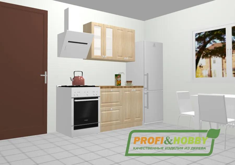 Кухня 1.2 х 2.14 м, массив сосны, бесцветный акриловый лак