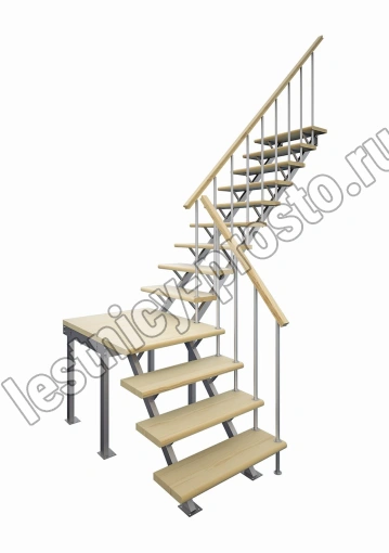 Универсальная лестница на металлическом каркасе с поворотной площадкой. Идеально дополнит любой интерьер, имеет современный вид и удобна в использовании. Монтаж осуществляется силами двух человек на объекте по указаниям, приведенным в паспорте на лестницу.