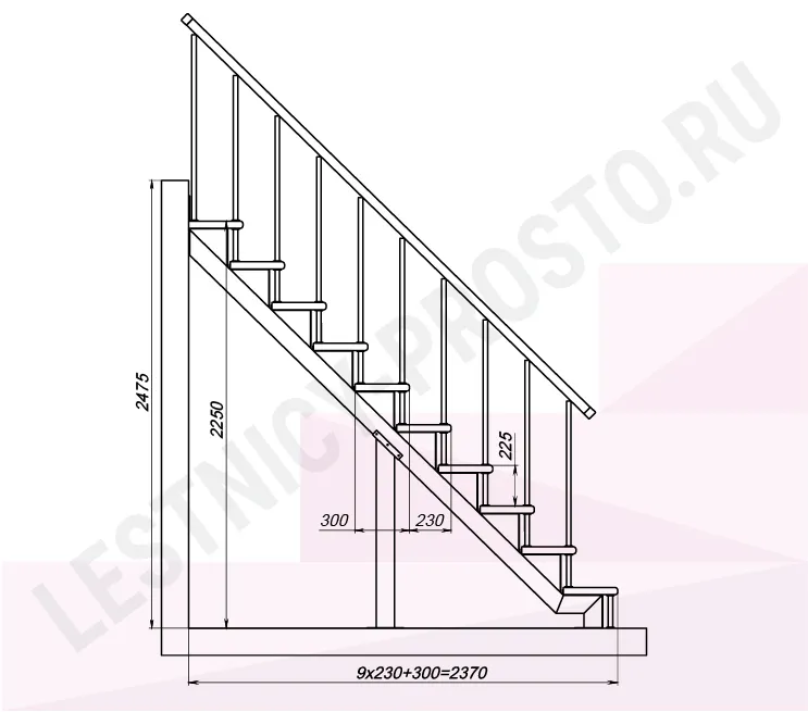 Лестница PROSTO MONO прямая, h247.5 см, ступени лиственница