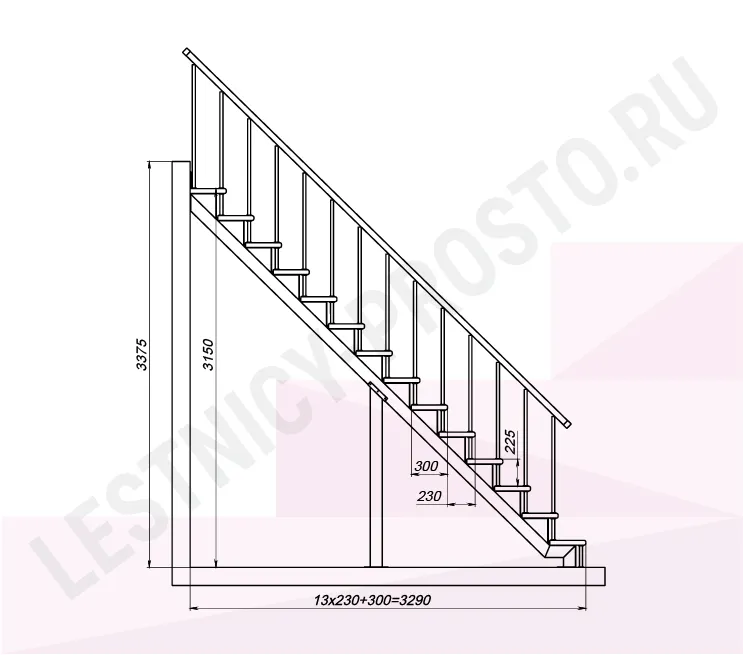 Лестница PROSTO MONO прямая, h337.5 см, ступени лиственница