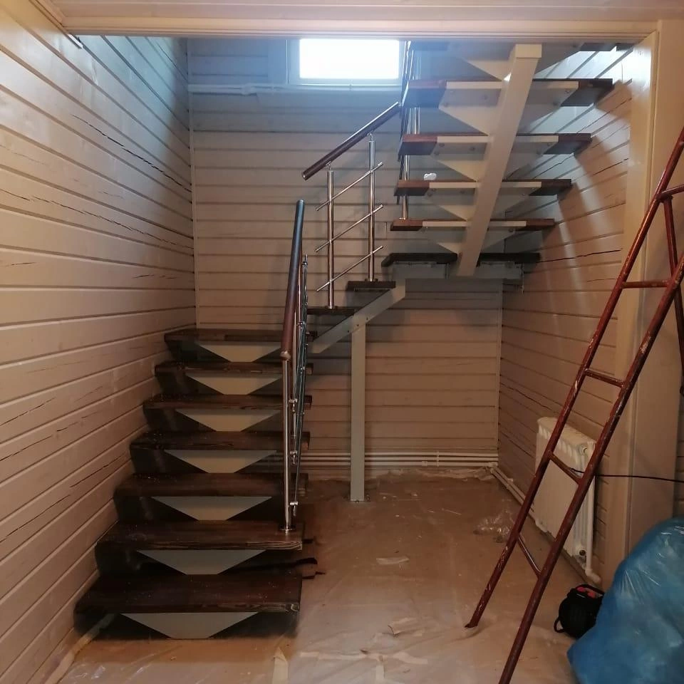Конструкция представляет собой стальной монокосоур, на который крепятся ступени из выбранной породы дерева.