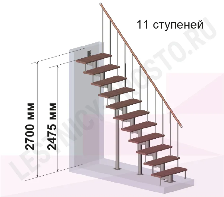 Высота лестницы 2475 - 2700 (11 ступеней) мм