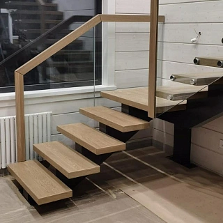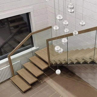 Стеклянная лестница из ясеня LP-2935 с металлическим каркасом
