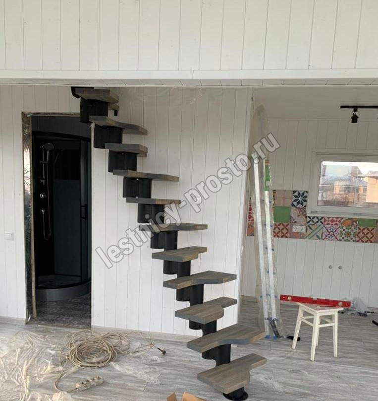 Лестница Prosto Urban Black гусиный шаг 700 мм, h180-264 см (10 ступеней), ясень