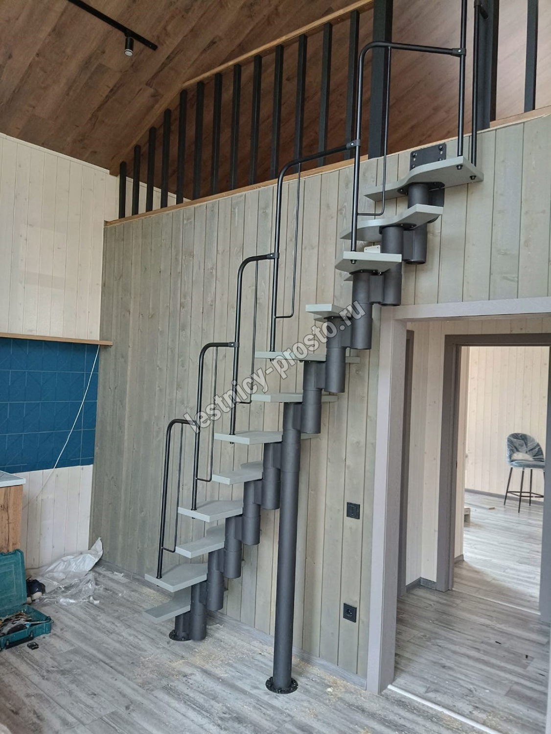 Лестница Prosto Urban Black гусиный шаг 700 мм, h216-312 см (12 ступеней), бук