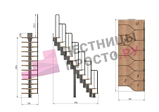 Лестница Prosto Urban Black гусиный шаг 700 мм, h234-336 см (13 ступеней), бук
