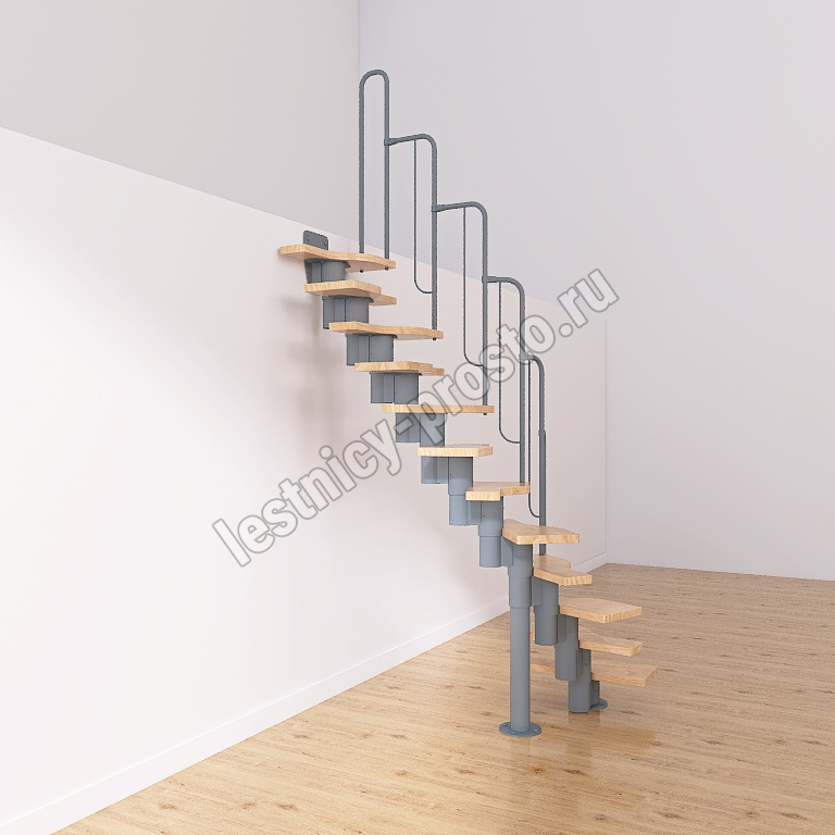 Лестница Prosto Urban Grey г-образная гусиный шаг 600 мм, h216-312 см (12 ступеней)