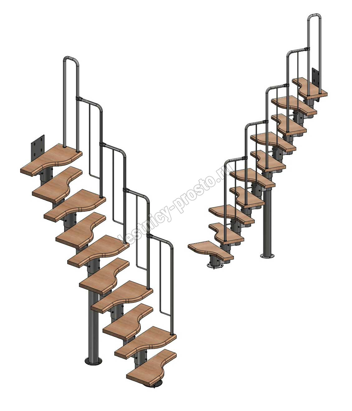 - Регулируемый по высоте в пределах 180-240 мм модуль. Большой диаметр и толщина металла деталей обеспечивают жесткость и прочность конструкции. Регулировка каждого модуля по высоте позволяет легко приспособить лестницу под ваше помещение.
