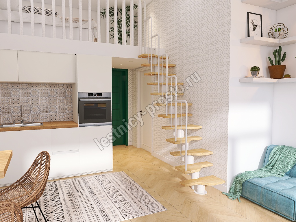 Лестница Prosto Urban White гусиный шаг 600 мм, h180-264 см (10 ступеней), ясень