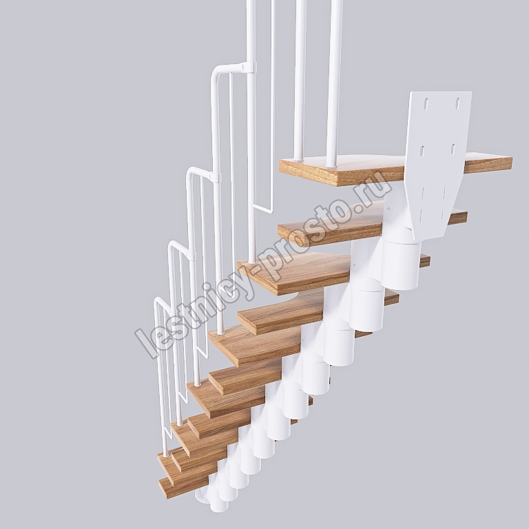 Лестница Prosto Urban White гусиный шаг 600 мм, h198-288 см (11 ступеней), берёза мультиплекс