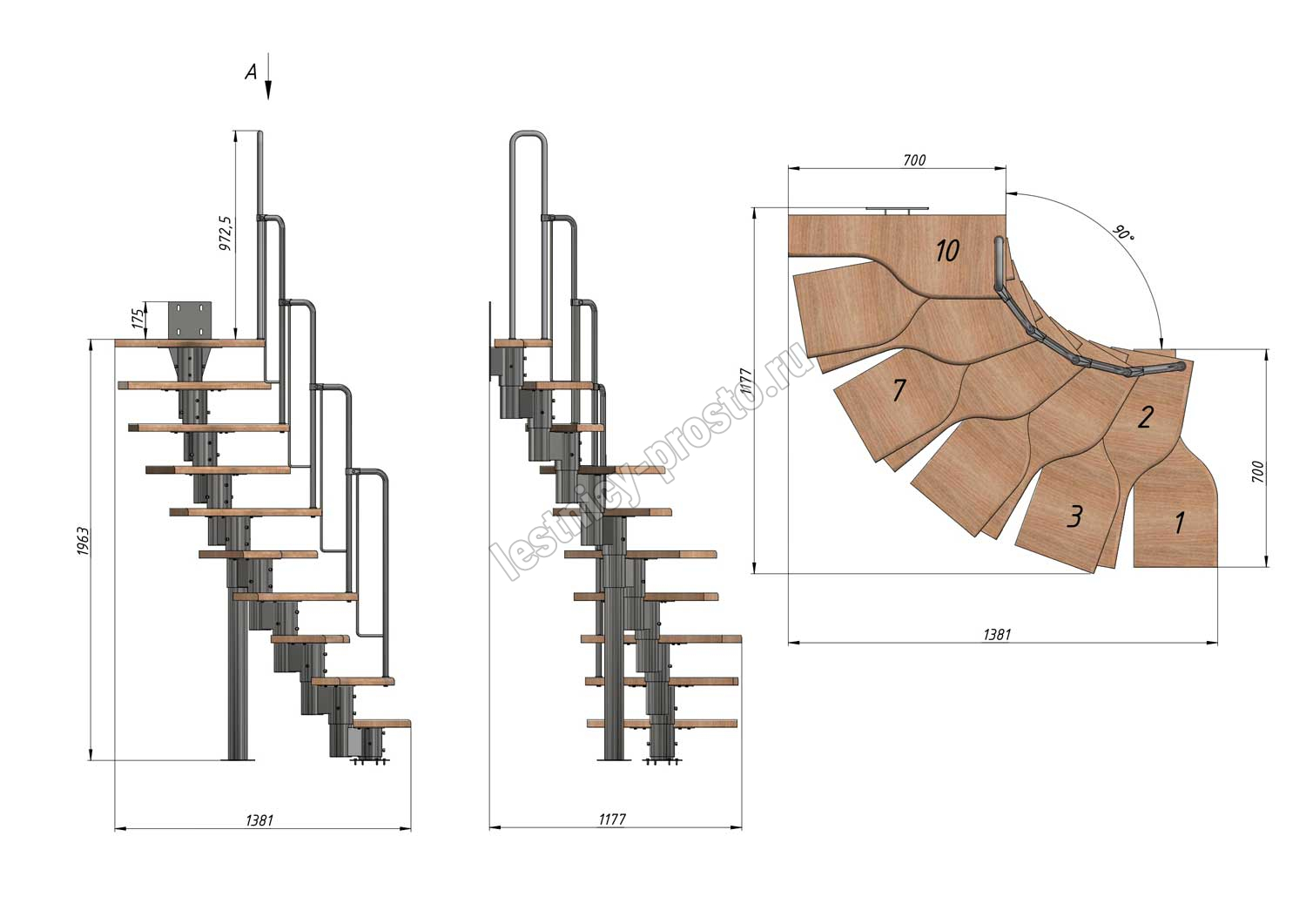 Высота лестницы 1800 - 2640 (10 ступеней) мм