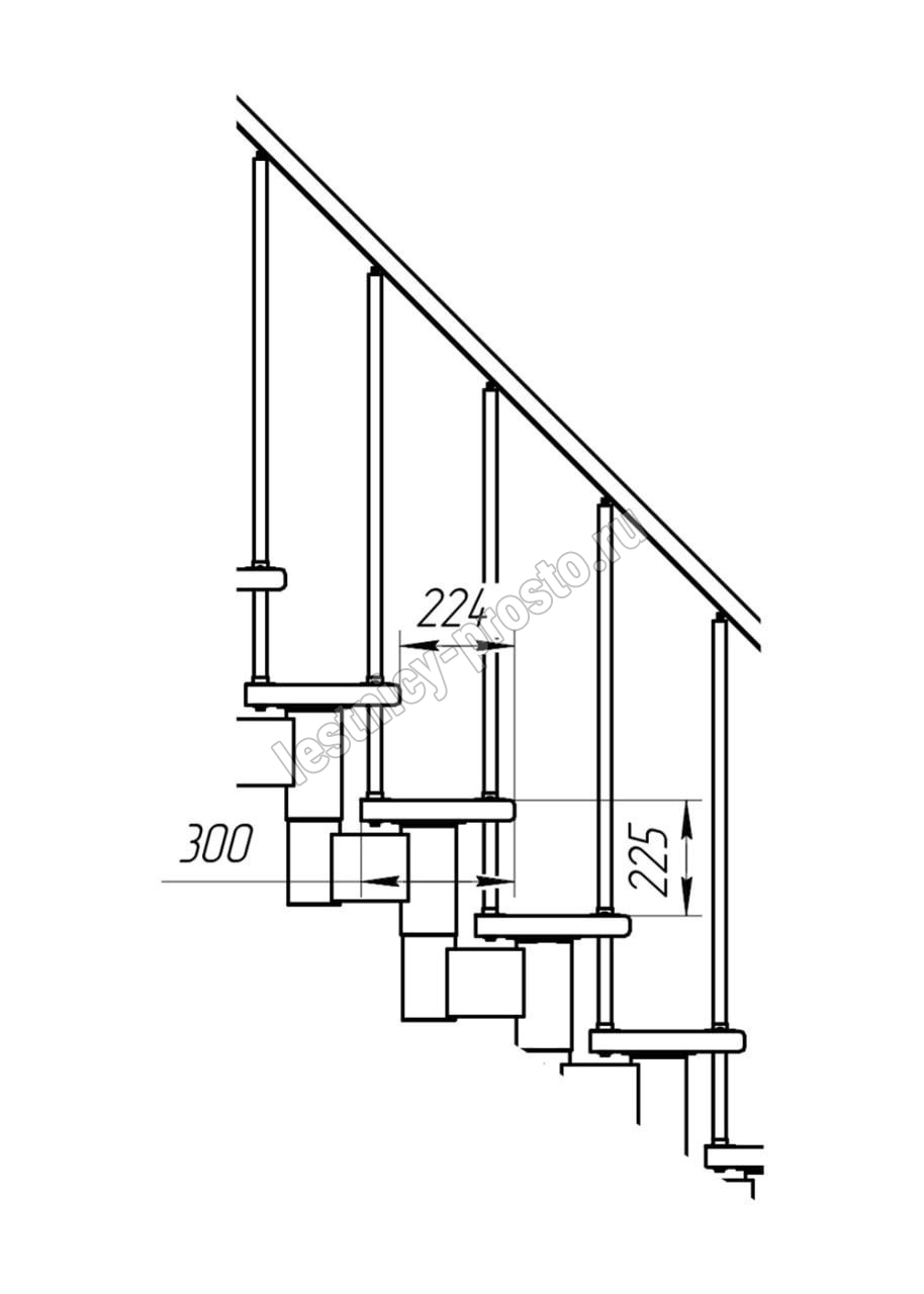 Модульная лестница Фаворит 225 2925-3055, Черный, Лиственница, Крашеная