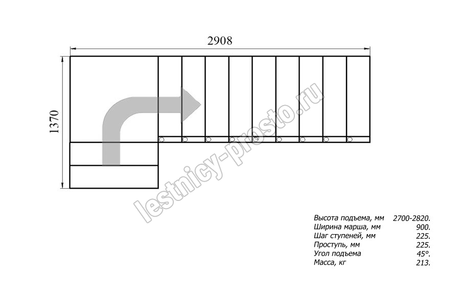 Модульная лестница Статус 225 2700-2820, Черный, Лиственница, Нержавеющая сталь