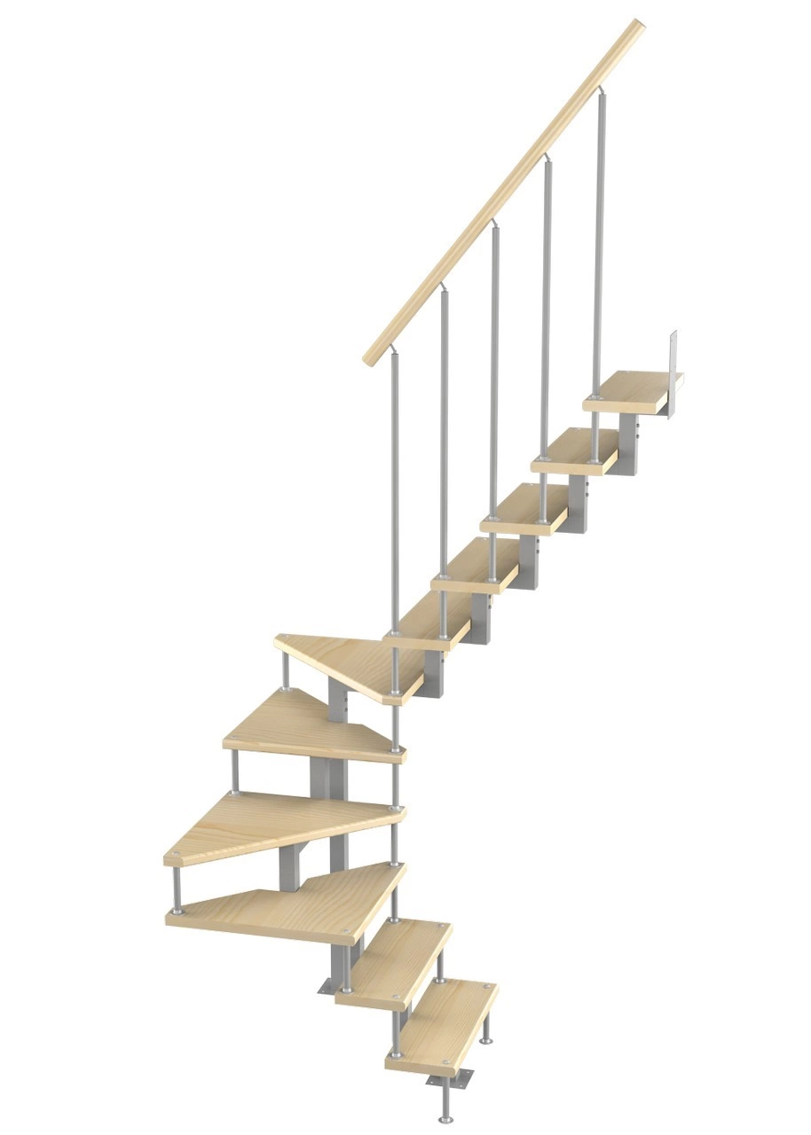 Модульная малогабаритная лестница Эксклюзив 2475-2700, Серый, Бук, Нержавеющая сталь