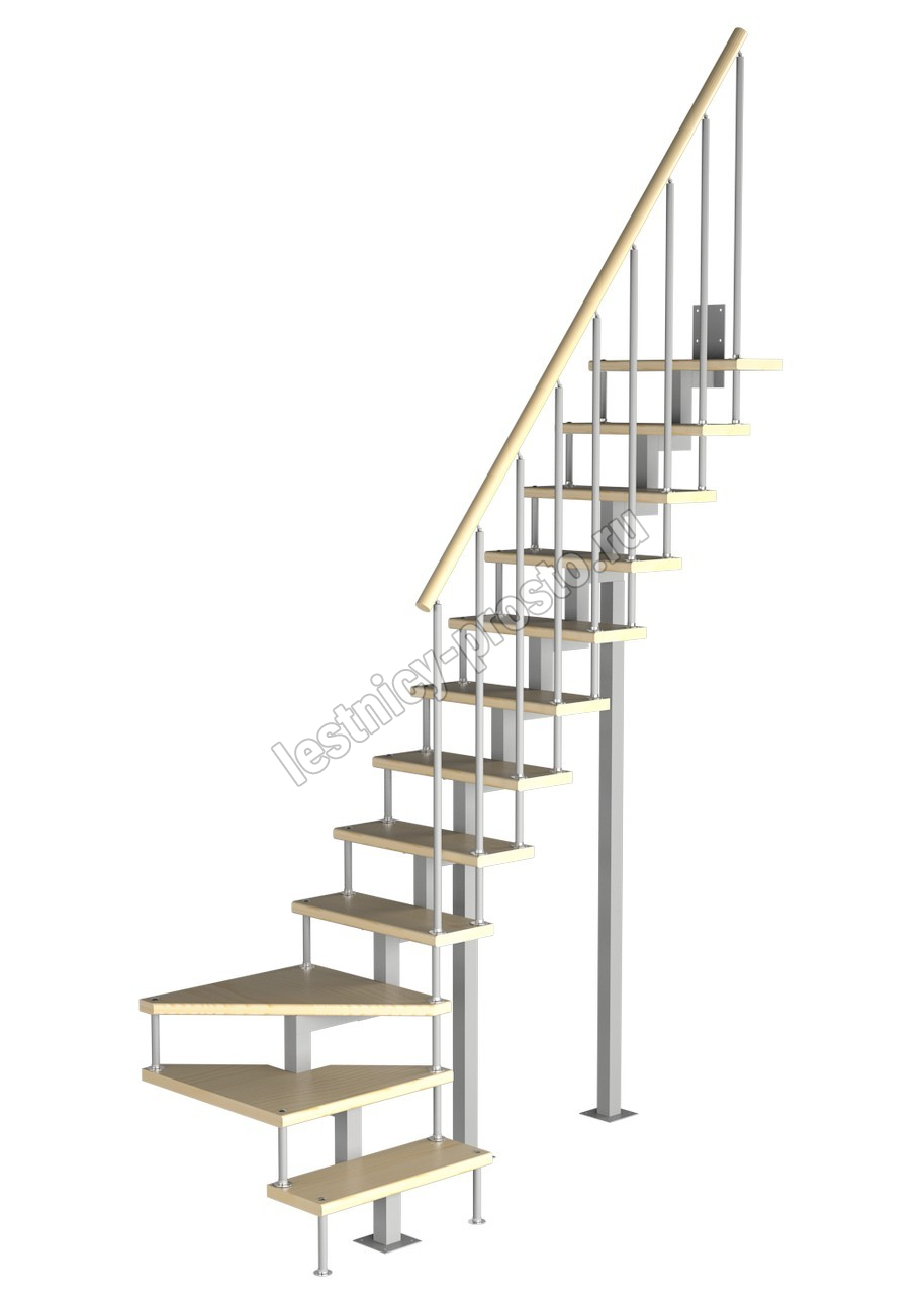 Модульная малогабаритная лестница Компакт 2700-2925, Серый, Бук, Нержавеющая сталь